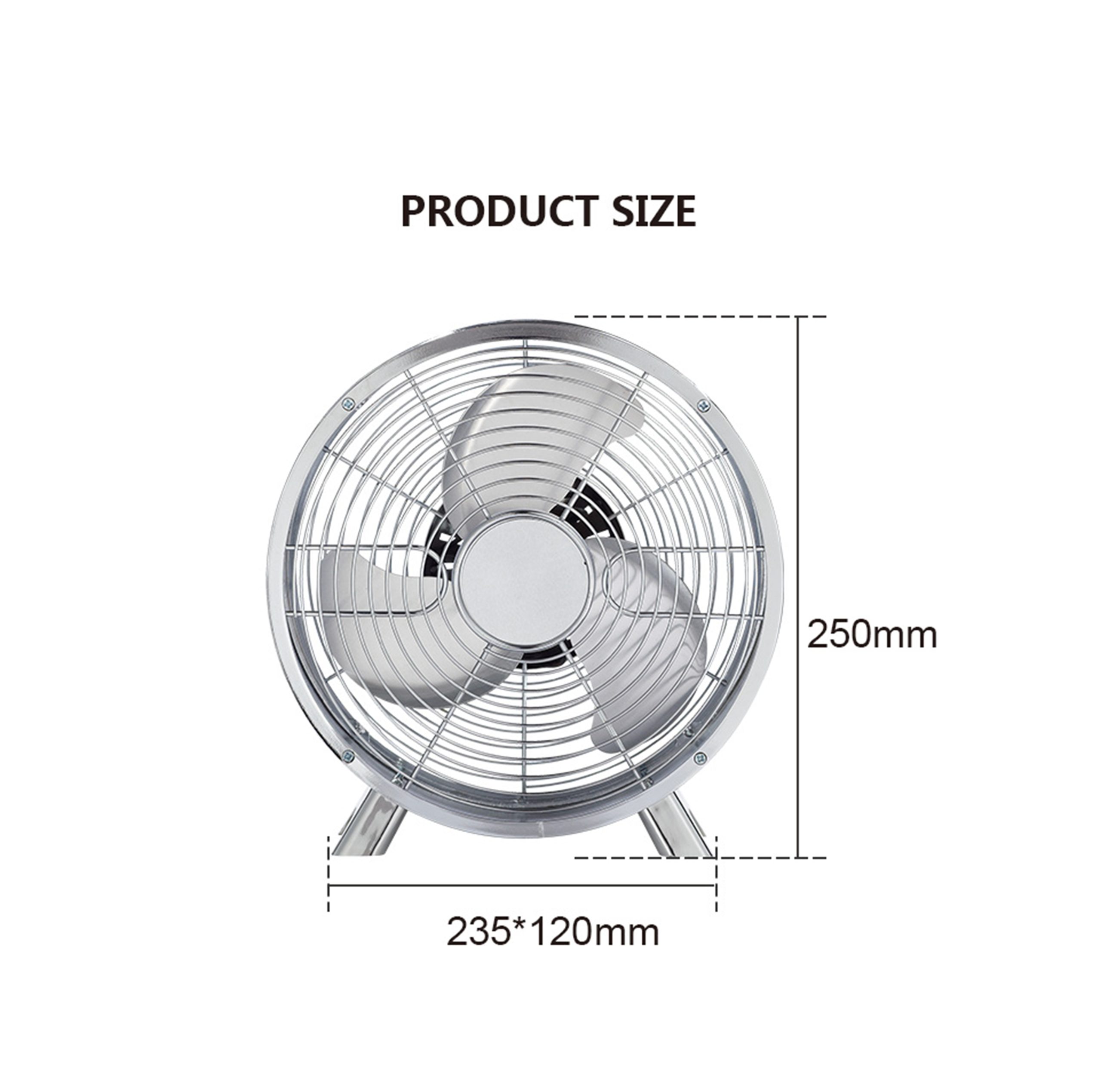 220V 20W 3 Blades Silver Metal Clock Table Fan
